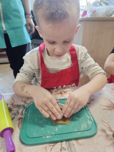 Pieczenie pierników – Podróżnicy Post author:Elżbieta Prus Post published:15 stycznia, 2024 Post category:Wydarzenia 15.12.2024 r. Dzieci z grupy Podróżników miały wspaniałą okazję uczestniczyć w zajęciach kulinarnych. Pieczenie pierniczków stało się pretekstem do rozmowy o tradycjach świątecznych i aromatach przypraw. Może ci się spodobać również Jesienny koncert Gucia i Dudusia 23 listopada, 2025 Realizacja projektu „Polska mój dom” – Podróżnicy 12 maja, 2025 Zabawa matematyczna u Biedronek 15 października, 2023